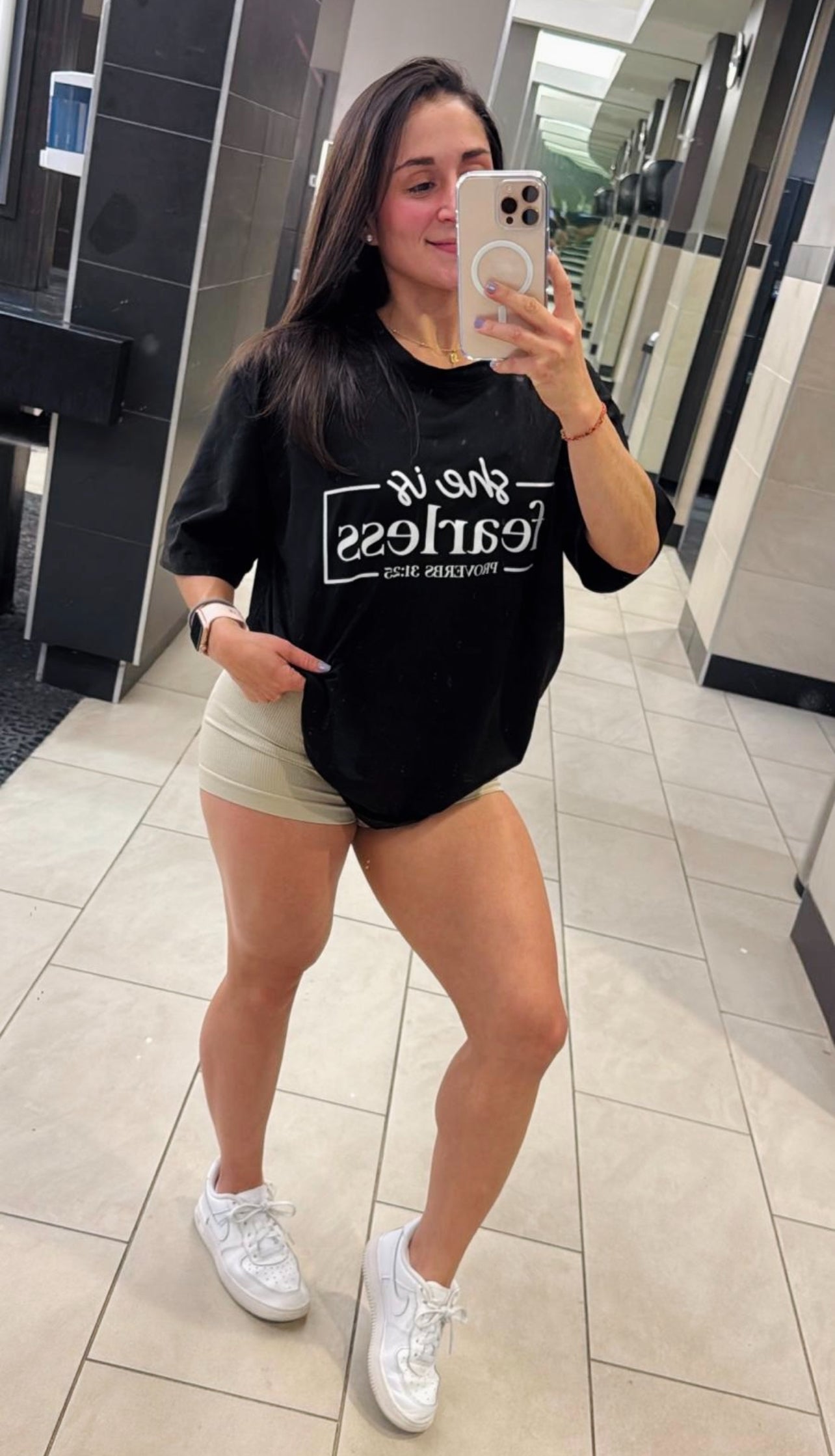 Esta camiseta de edición especial, con el poderoso mensaje “She is Fearless” y la cita bíblica de Proverbios 31:25, es perfecta para mujeres que desean expresar su fortaleza interior y su fe. Con un diseño cómodo y suelto, es ideal tanto para entrenar como para tus actividades diarias. Combina estilo y propósito, haciendo una declaración audaz en cada paso que des. Disponible en negro, con letras blancas, este top se convertirá en una de tus prendas favoritas para sentirte empoderada.